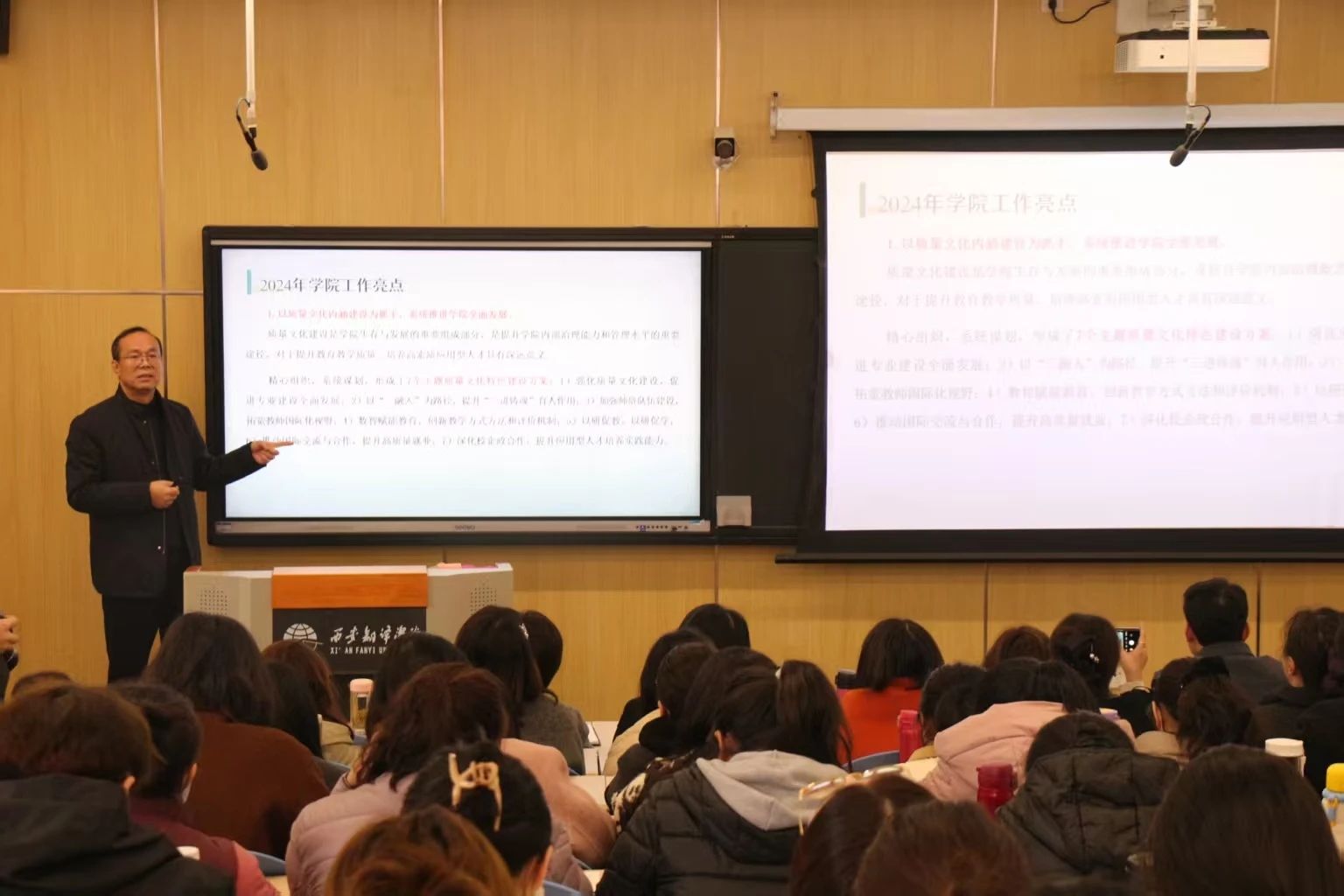 宇文永康对学院2024年度党委和学生工作进行了总结,并对2025年工作思路进行了梳理。他强调,2025年是学院“十四五”规划承上启下的关键一年,全体教职工要继续深入学习贯彻党的二十大精神以及党的二十届三中、四中全会精神,坚持立德树人根本任务,以高质量发展为主题,以改革创新为动力,以党的建设为保障,凝心聚力、真抓实干,奋力开创学院事业发展新局面。