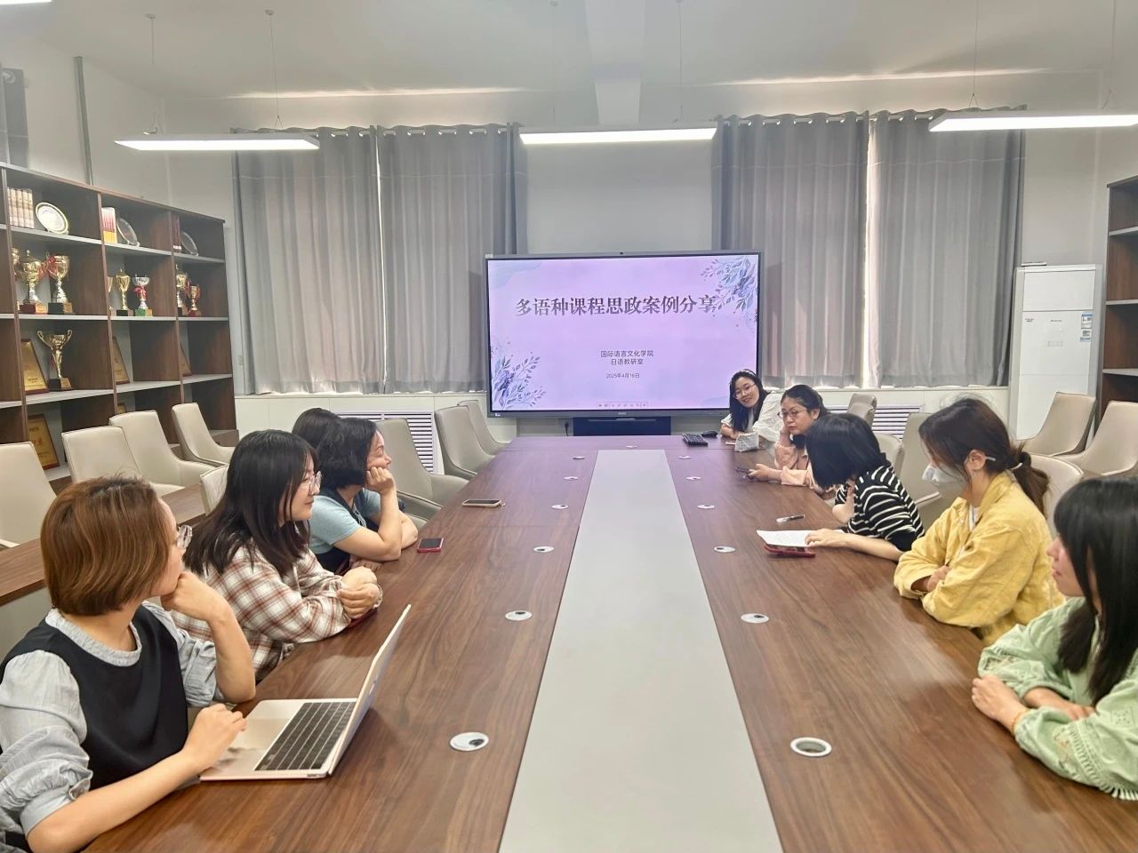 活动首环节为多语种课程思政案例分享。各专业教师代表结合专业特色,呈现了各具亮点的实践探索: