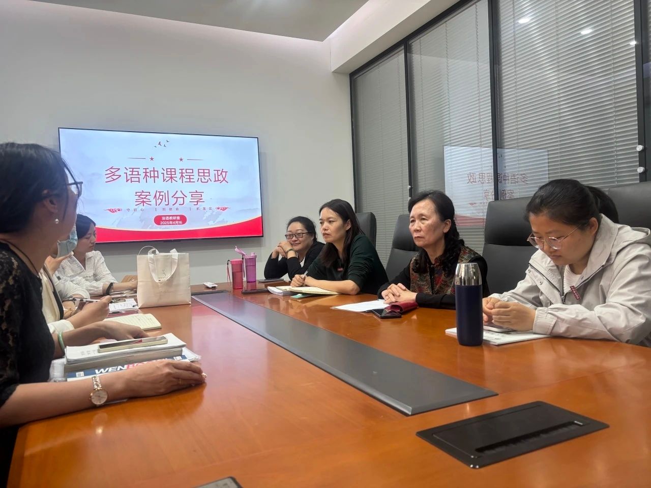在专题研讨环节,与会教师围绕“多语种课程思政的难点与突破”“如何避免‘生硬植入’现象”等议题展开热烈讨论。大家一致认为:课程思政需立足专业特性,深挖语言背后的文化价值、历史逻辑,实现“润物无声”;教学方法应注重互动性与参与感,通过情景模拟、项目式学习等方式提升育人效果;持续更新教学素材,及时融入时政热点与最新理论成果。