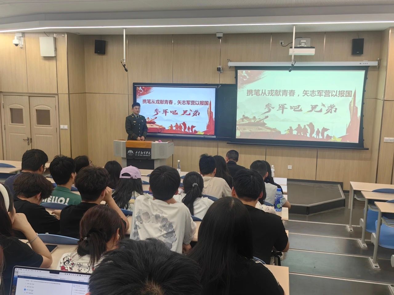 校武装部陈忠毅老师重点给学生们解读了征兵流程和学校为我校青年学子参军入伍所制定的经济补贴优待政策,也鼓励学生们积极响应国家号召,参军入伍,成为有梦想、有担当、有追求的新时代热血青年,以奋发有为的精神面貌投身于强军实践。