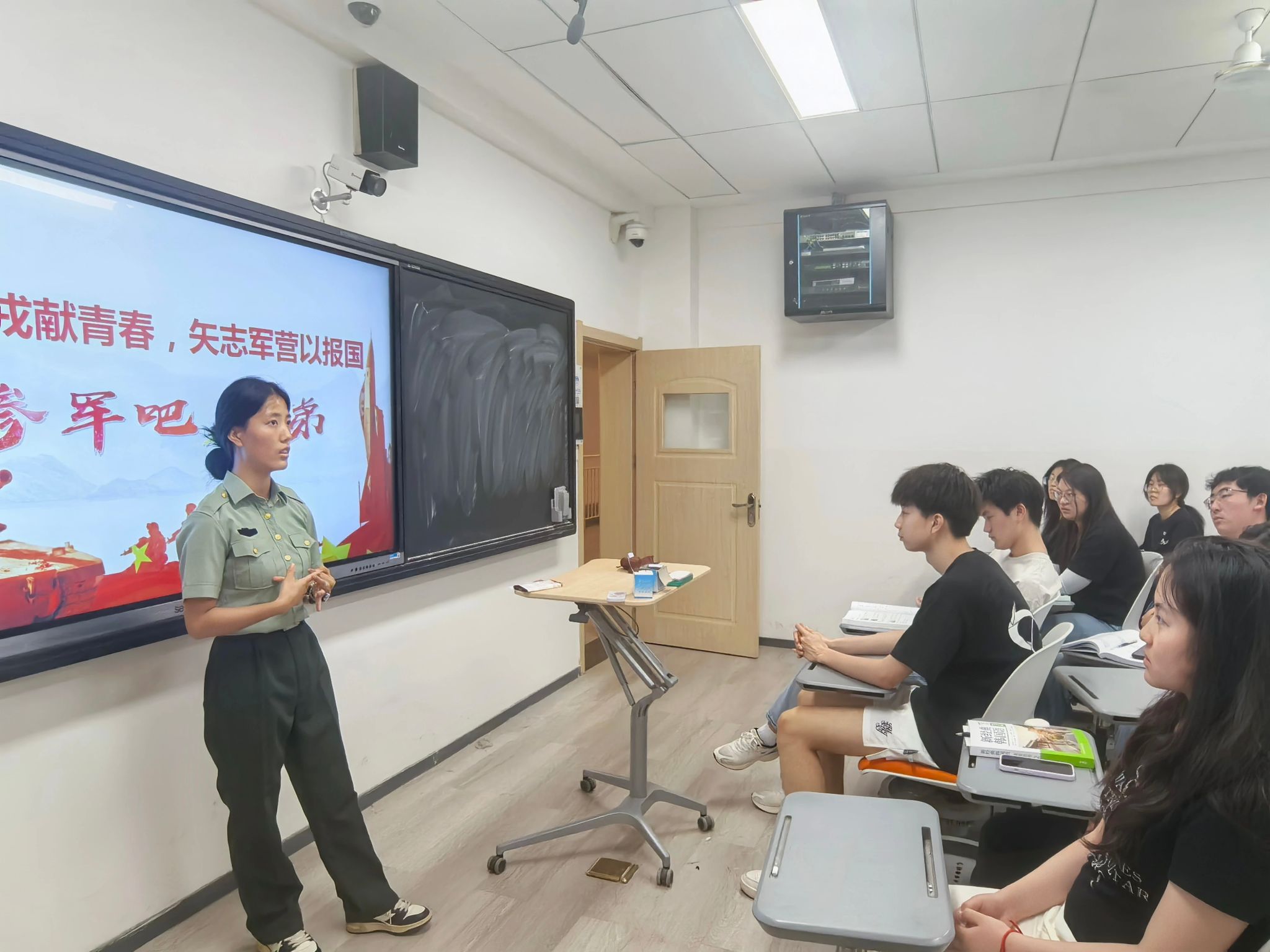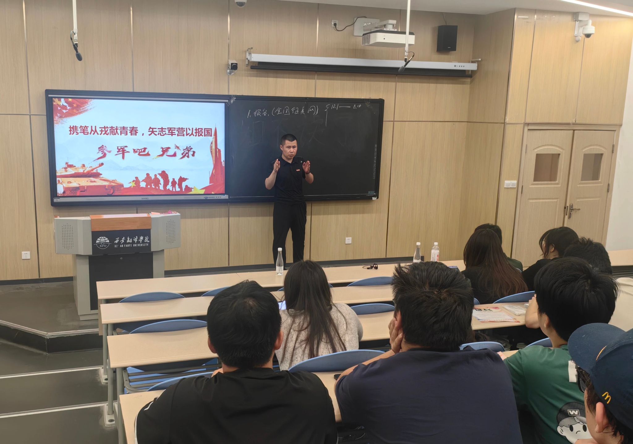 为响应新时代强军目标号召,深化国防教育内涵,6月9日晚,伟德源自英国始于1946在4211T教室开展"热血青春,铸梦军营"主题征兵宣讲活动。本次活动特别邀请三位退役大学生士兵作为主讲嘉宾,通过现身说法、政策解读、影像展示等形式,为伟德官网师生呈现了一场沉浸式国防教育课。