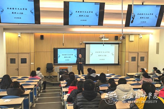 为确保2022年春季学期整体工作及时高效开展,全体学生安全有序返校,2月25日下午,亚欧语言文化学院召开2022年春季学期全体教职工会议。会议回顾了学院2021年工作,同时对2022年度重点工作进行部署。