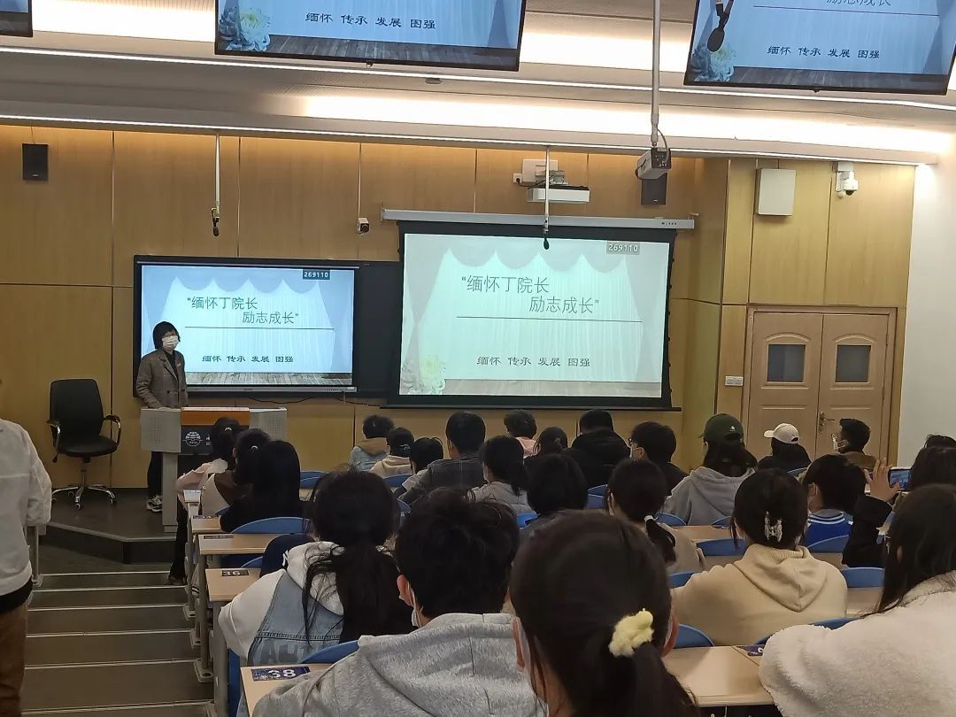 最后,辅导员赵矜宓老师做总结讲话,她表示:“我和你们一样,虽未能与丁老院长谋面,但我们都可以通过身体力行去践行丁老院长对我们的厚望,将校训和西译精神铭记在心中,力行到实践中去。成就更好的自己。”