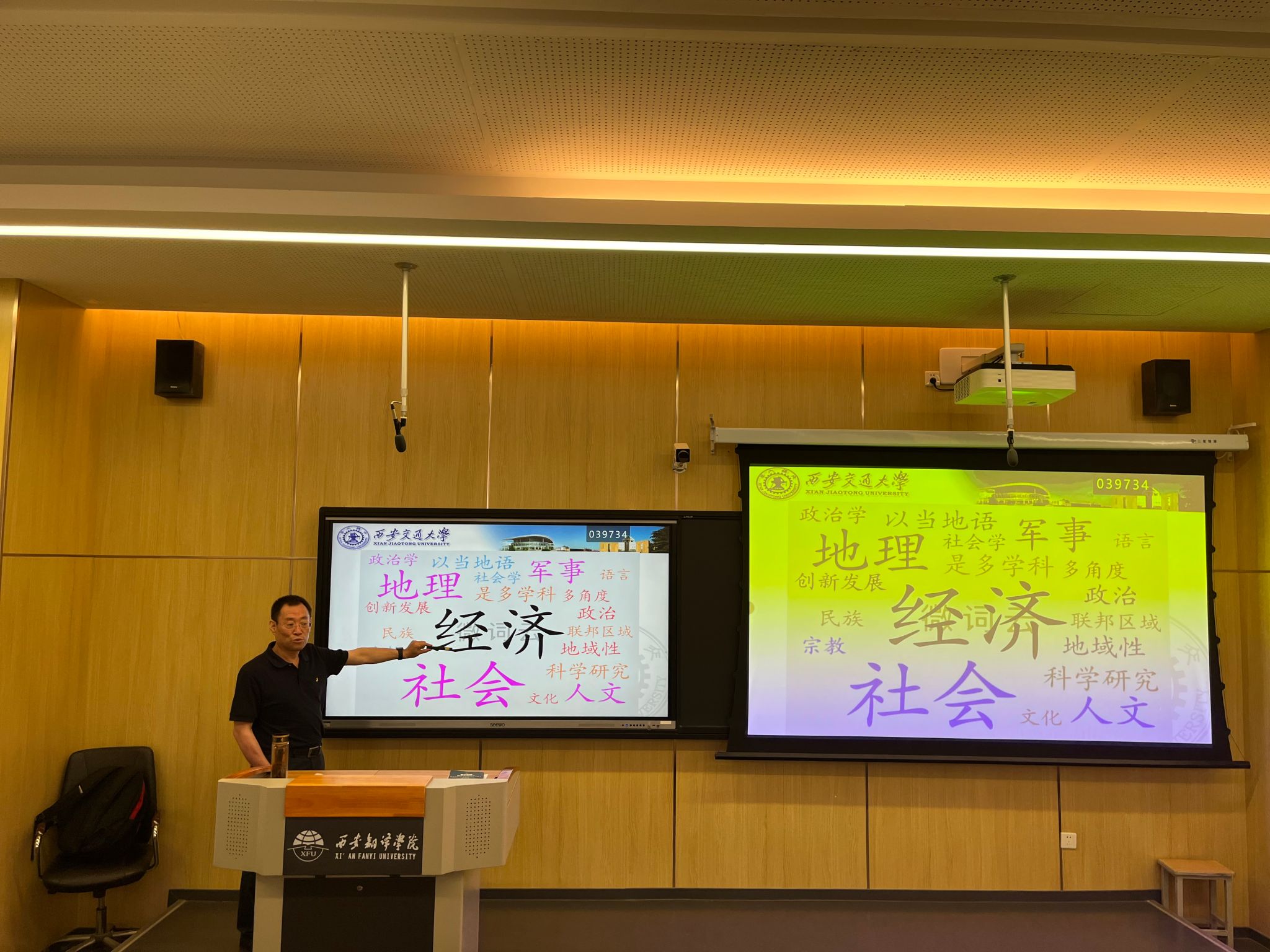 5月20日下午,西安交通大学外国语学院教授、博士生导师、国际问题与文化安全战略研究所所长郭继荣应邀为亚欧语言文化学院教师作了题为《国别与区域研究综述及前沿问题》专题讲座。讲座由亚欧语言文化学院院长李庆明教授主持,全体专职教师、辅导员代表参加讲座。