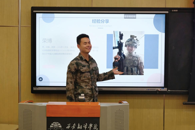 为积极做好2023年秋季征兵工作,深入普及大学生国防教育和征兵政策,激发大学生投身国防建设、报效祖国的热情,6月18日晚,亚欧语言文化学院举办“火热军营,精彩人生”征兵宣讲会。学院三名退役大学生王烨、刘洋、荣博应邀进行了宣讲。辅导员黄仁秀迪和有参军意向的学生参会。
