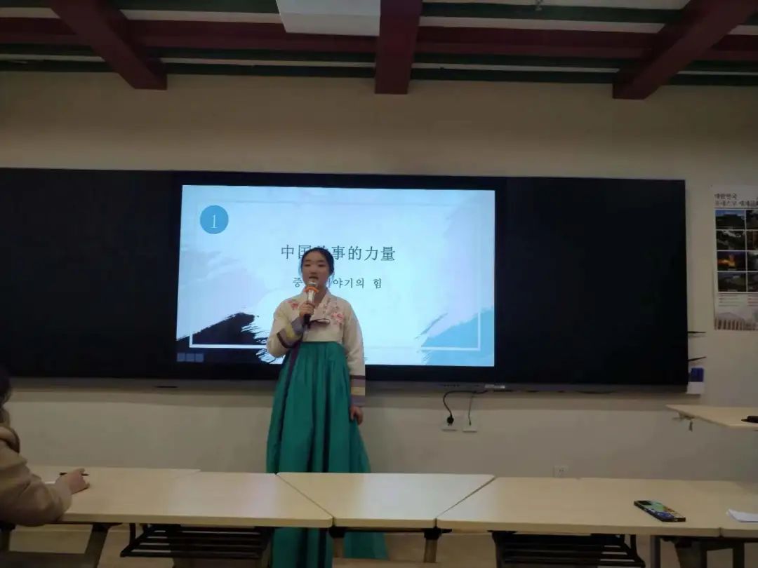 伴随着主持人宣读的评分规则,本次演讲比赛拉开帷幕,参加复赛的共有五位选手。各参赛选手围绕“中国故事的力量,一带一路:中国和世界,人与自然和谐共生的中国式现代化”等主题进行定题演讲。选手们以积极向上的精神状态,用韩语绘声绘色讲述了中国故事。他们的精湛演讲技巧和优美的韩语发音展示出朝鲜语专业学生的独特的魅力风采和良好的精神风貌,中韩文化碰撞产生的绚丽火花,赢得观众的阵阵掌声。