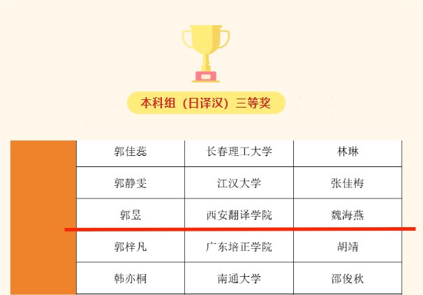 11月29日,第六届人民中国杯日语国际翻译大赛主办方公布了获奖名单,日语专业2021级学生郭昱(指导教师:魏海燕)荣获本科组(日译汉)三等奖。