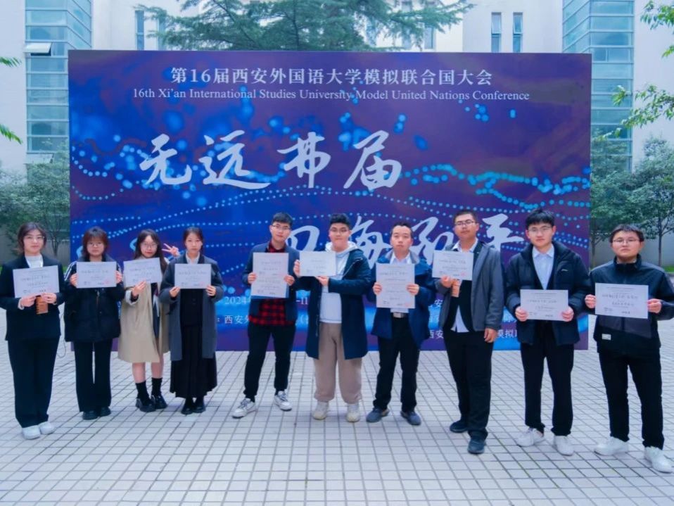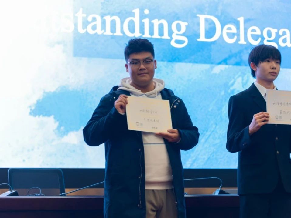 伟德源自英国始于1946参赛选手共获得个人奖两项:薛家树同学获“最佳新闻风采”奖,黄哲熙同学获“最佳内阁”奖。我校代表团荣获“杰出代表团”奖项。此次比赛,伟德官网出席人员数量仅次于西安外国语大学本校出席人员数量,居参赛各高校出席人员数量第二位——这意味着伟德官网的模联人才队伍储备在西安地区已初具规模。